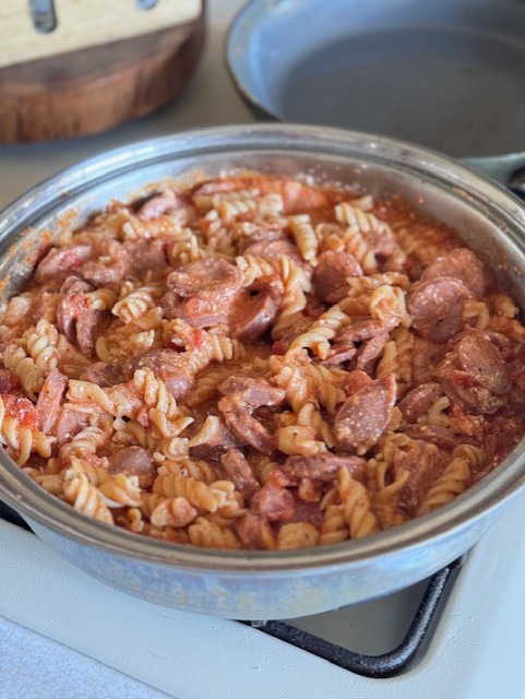 - High in protein (thanks to chickpea pasta + cottage cheese + sausage)